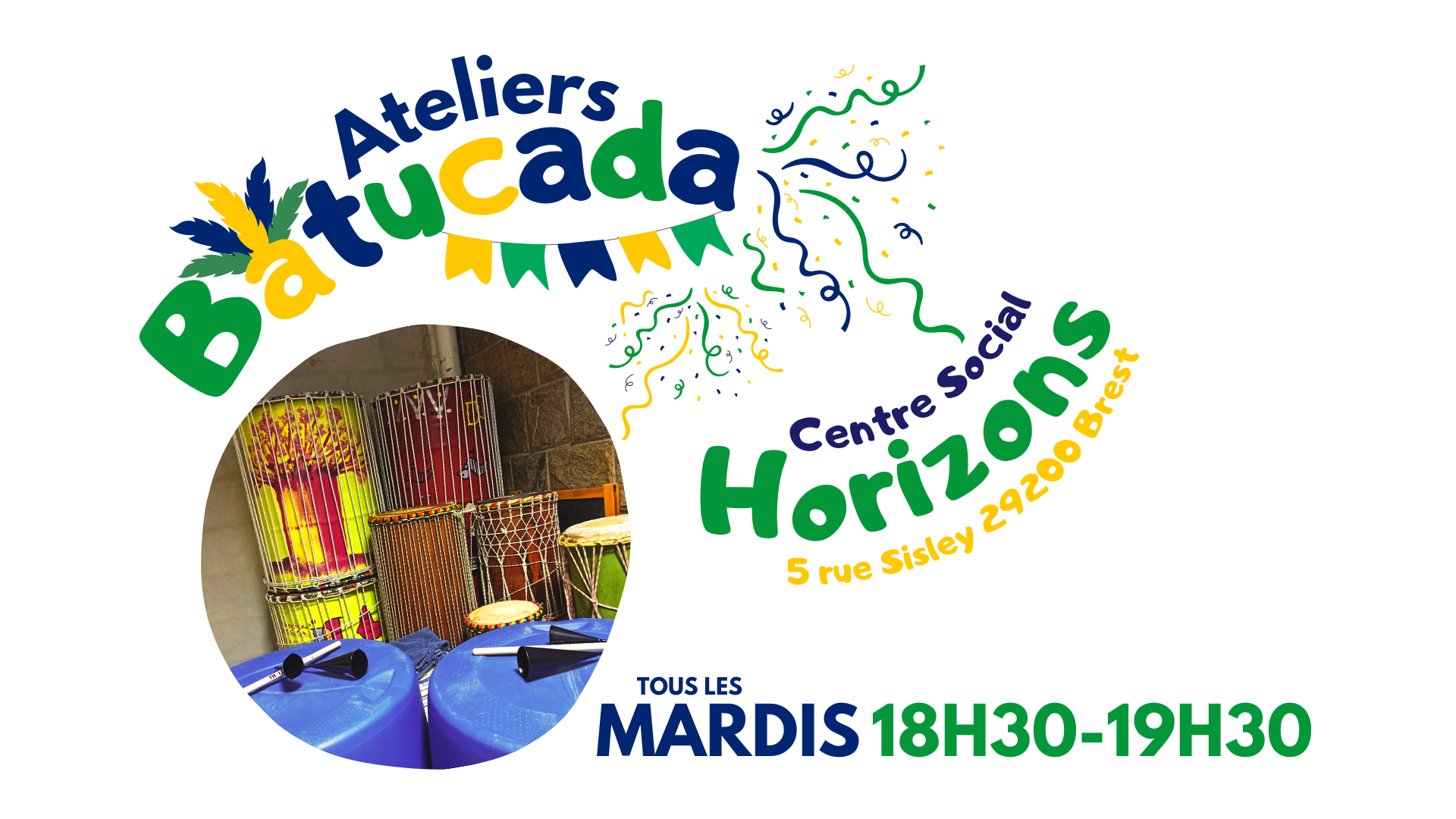 Style musical venu tout droit du Brésil, la Batucada, qui signifie « battre en rythme », s’offre à vous lors d’ateliers gratuits et ouverts à tous au Centre Social Horizons !