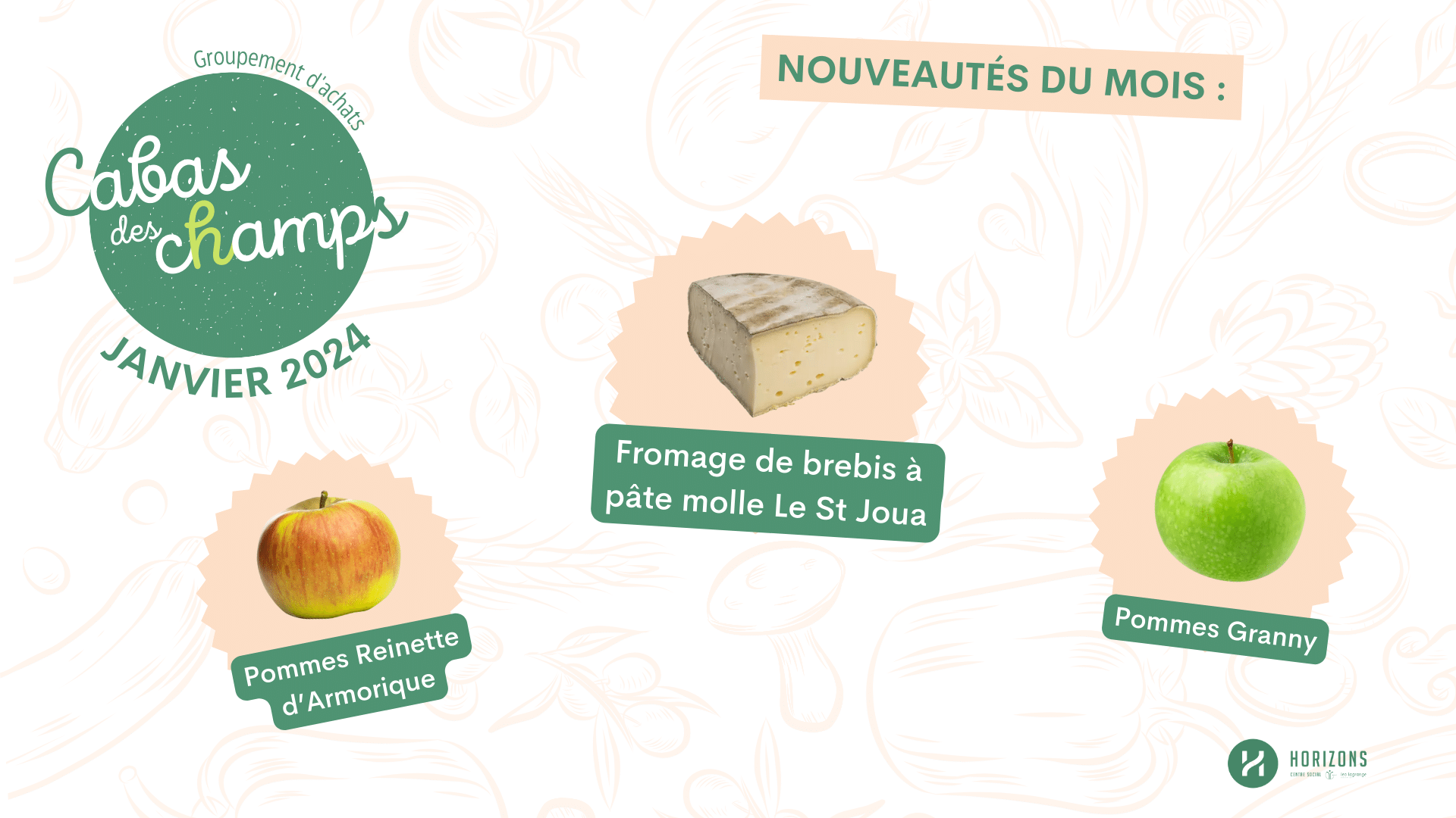Le premier Cabas des champs de l’année 2024 est disponible, avec notamment en nouveautés un fromage de brebis et deux variétés de pommes !