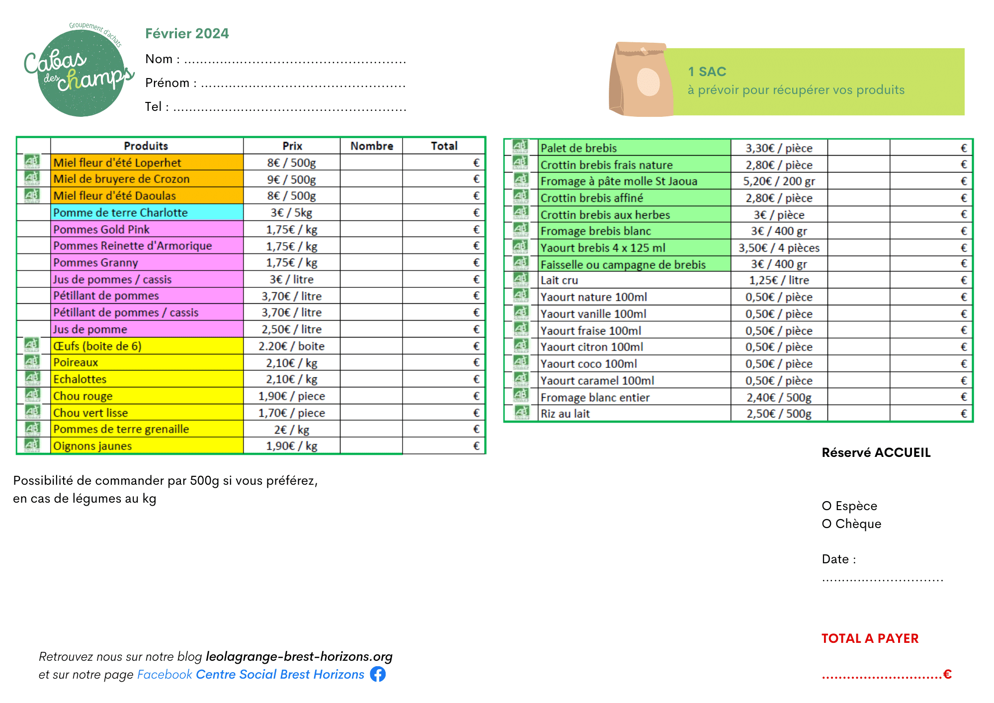 - Prise des commandes entre le lundi 12 et le jeudi 15 février 2024.