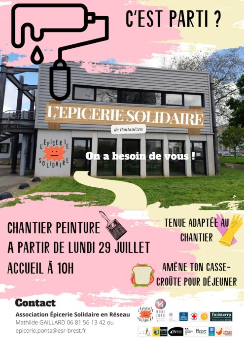La future épicerie solidaire de Pontanézen lance un appel à bénévoles pour le début du chantier peinture qui démarre lundi 29 juillet à 10h.
