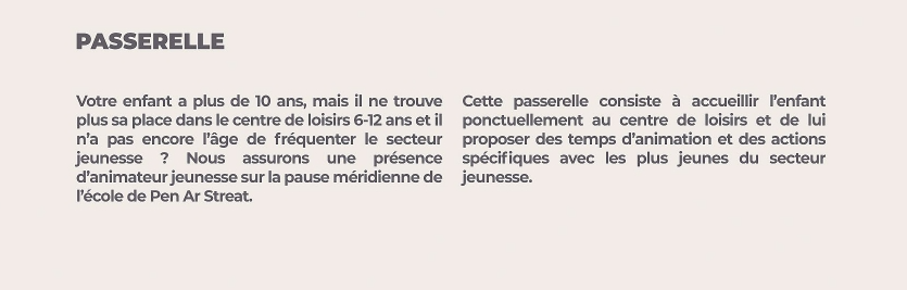 Partenariat La classe passerelle fait partie du Dispositif de Réussite Educative et est située au sein de l’Ecole Pen ar Streat. Des actions ponctuelles sont mises en place en partenariat plusieurs fois dans l’année (visites, spectacles…)