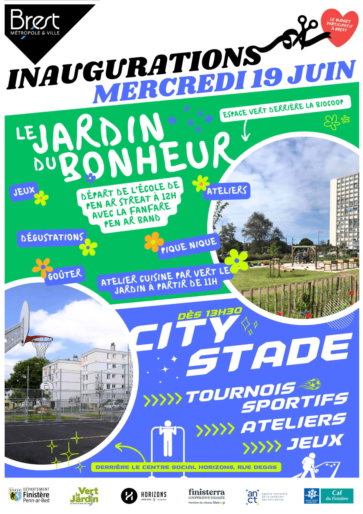 Mercredi 19 juin 2024, vous êtes conviés aux inaugurations de deux des projets lauréats de l’édition précédente du budget participatif de la ville, à savoir le Jardin du bonheur et le City Stade.
