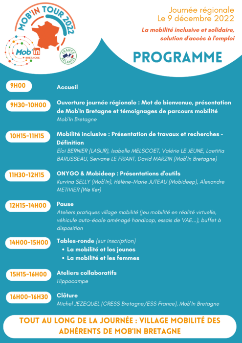Vendredi 9 décembre 2022, le Centre Social Horizons accueille la Journée régionale Mob’in Bretagne, portant sur la mobilité solidaire et inclusive comme solution d’accès à l’emploi.