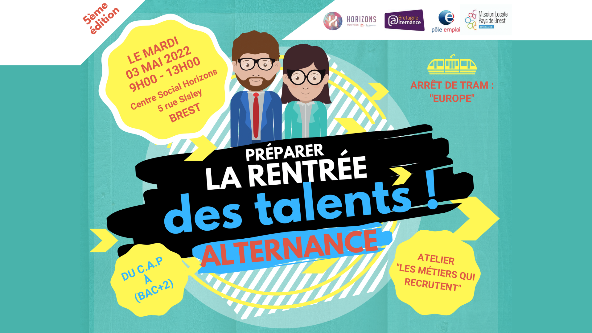 Mardi 3 mai 2022 de 9h à 13h, venez à la rencontre des acteurs de l’alternance au Centre Social pour la cinquième édition de la « Rentrée des talents ! »