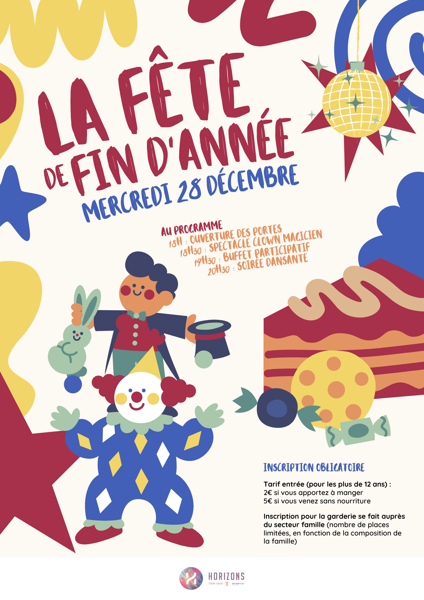 Mercredi 28 décembre 2022, le Centre social organise un moment fort pour la fin d’année avec les habitants du quartier !