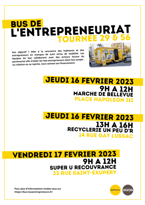 Vous pouvez trouver les autres dates de la tournée ainsi que plus d’informations sur leur site internet : https://bus-tousentrepreneurs.fr/