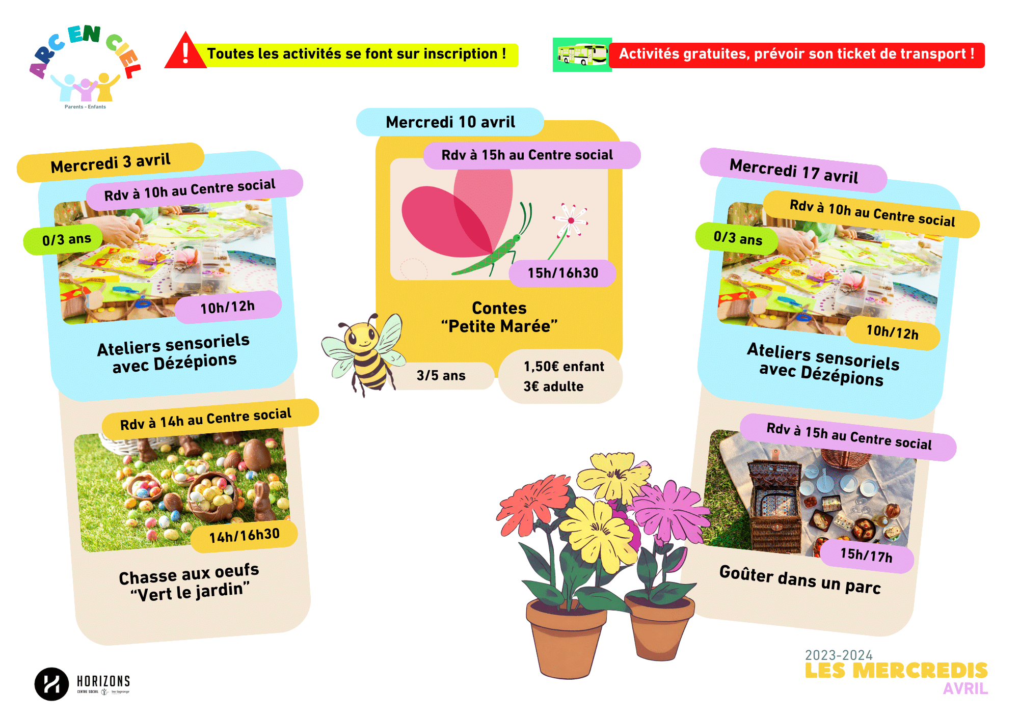 En attendant les vacances d’avril, retrouvez ci-dessous les activités proposées par le secteur famille pour les 3 prochains mercredis !