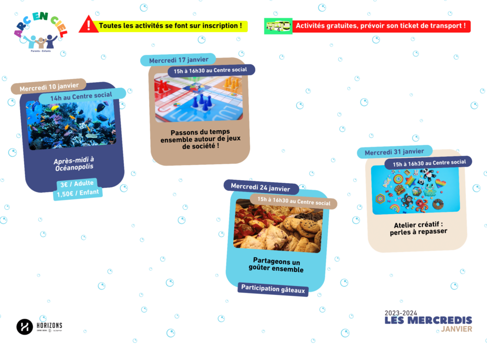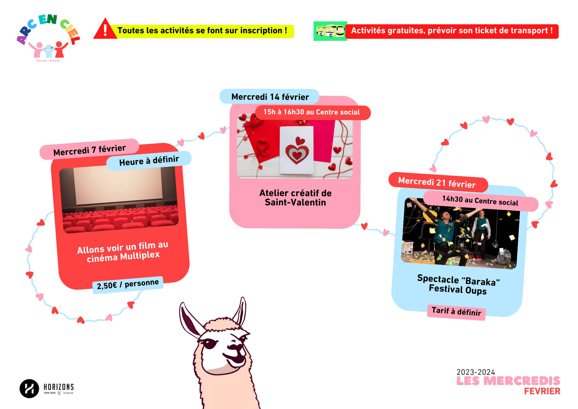 Ci-dessous, la programmation des premiers mercredis de l’année 2024 proposée par le secteur famille !