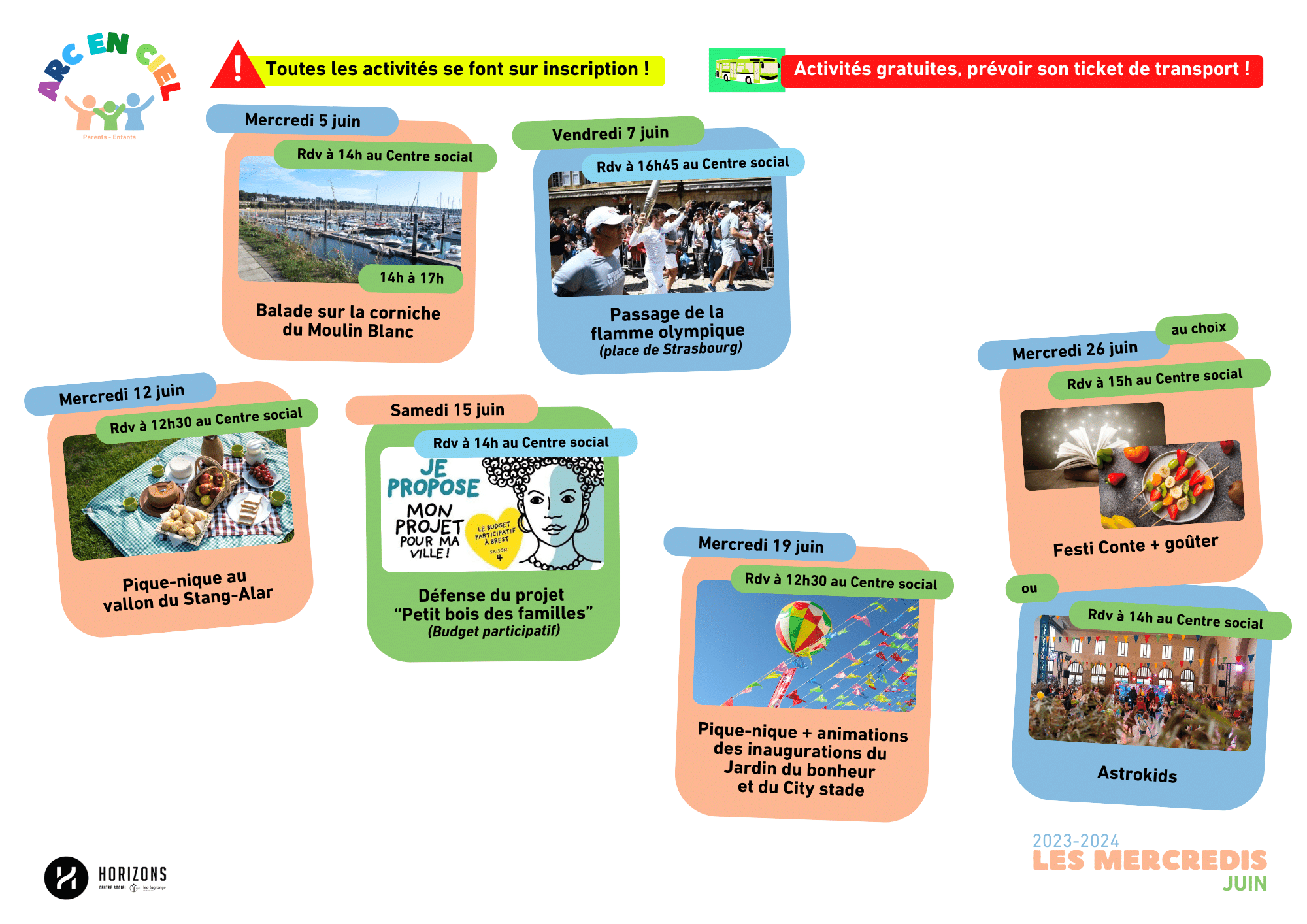 Les Mercredis Arc en ciel – Juin 2024 – Parents/enfants Publication publiée :4 juin 2024 Post category:A l'affiche / Famille / Mercredi / Pontanezen Ci-dessous, le planning des activités du mois de juin proposées par le secteur famille ! Étiquettes: brest, famille, mercredi, pontanézen Read more articles Article précédentFaites de la musique le mercredi 29 mai au jardin Nattier Article suivantRéunion d’information – Accueil de loisirs : activités de l’été et séjours