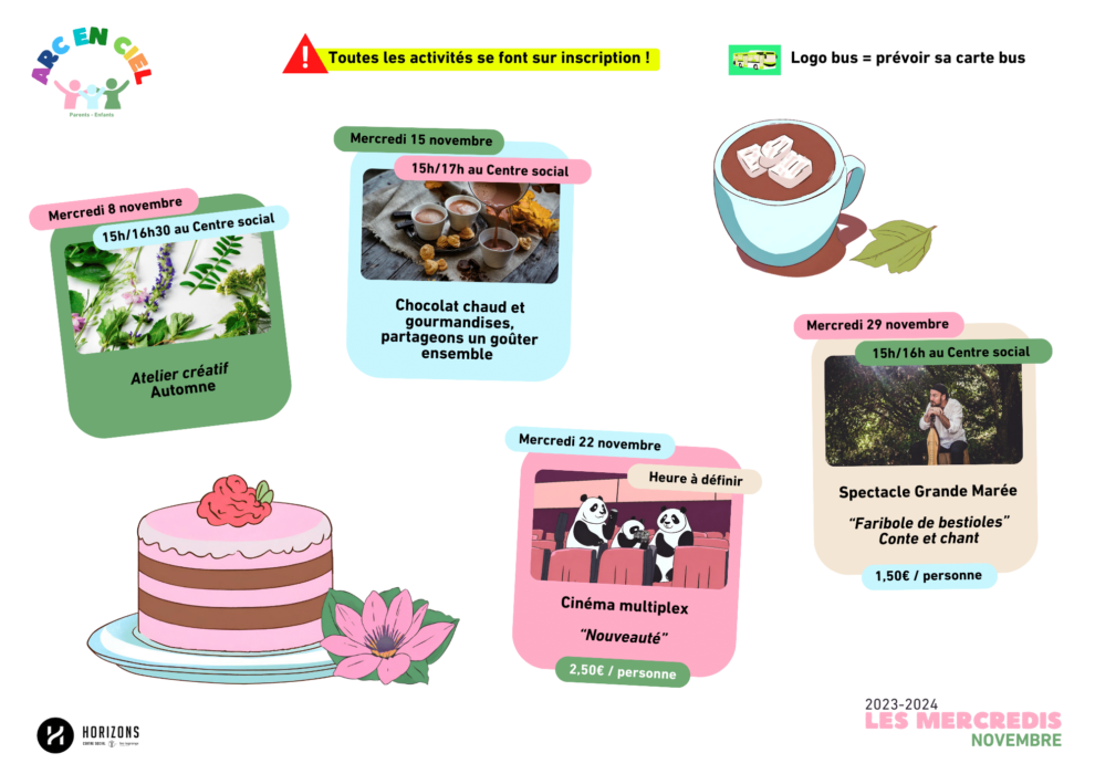 Les Mercredis Arc en ciel – Novembre 2023 – Parents/enfants Publication publiée :9 novembre 2023 Post category:A l'affiche / Famille / Mercredi / Pontanezen À découvrir ci-dessous, la programmation des mercredis après-midis proposés aux familles pour le mois de novembre : le message est clair, restons au chaud ! Étiquettes: brest, famille, mercredi, pontanézen Read more articles Article précédentCabas des champs et Vrac 29 – Novembre 2023 Article suivantCafé rencontres habitant.e.s : tous les lundis au Centre social