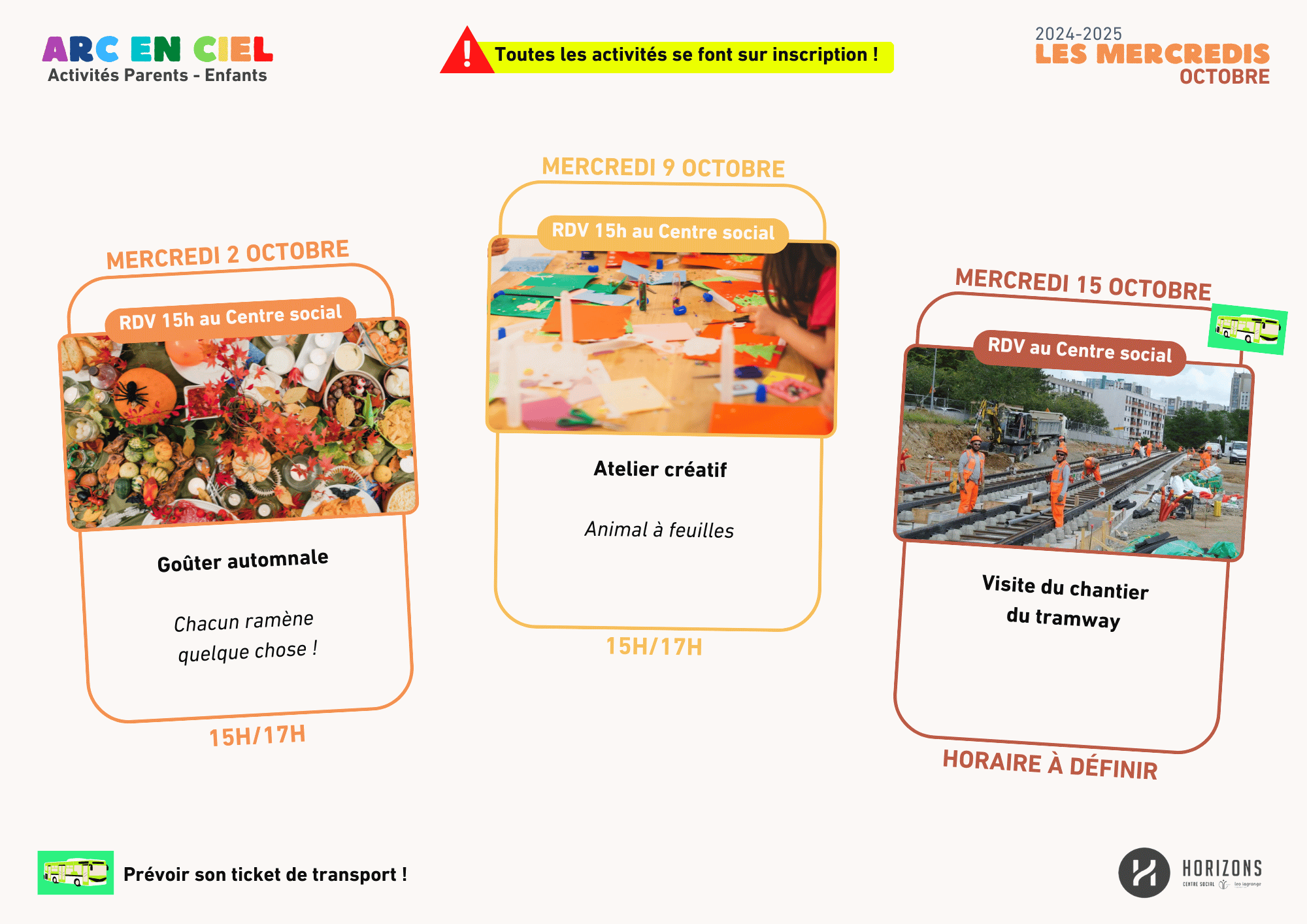 En attendant les vacances d’automne qui arrivent vite, le secteur famille vous propose de découvrir les activités des mercredis d’octobre :