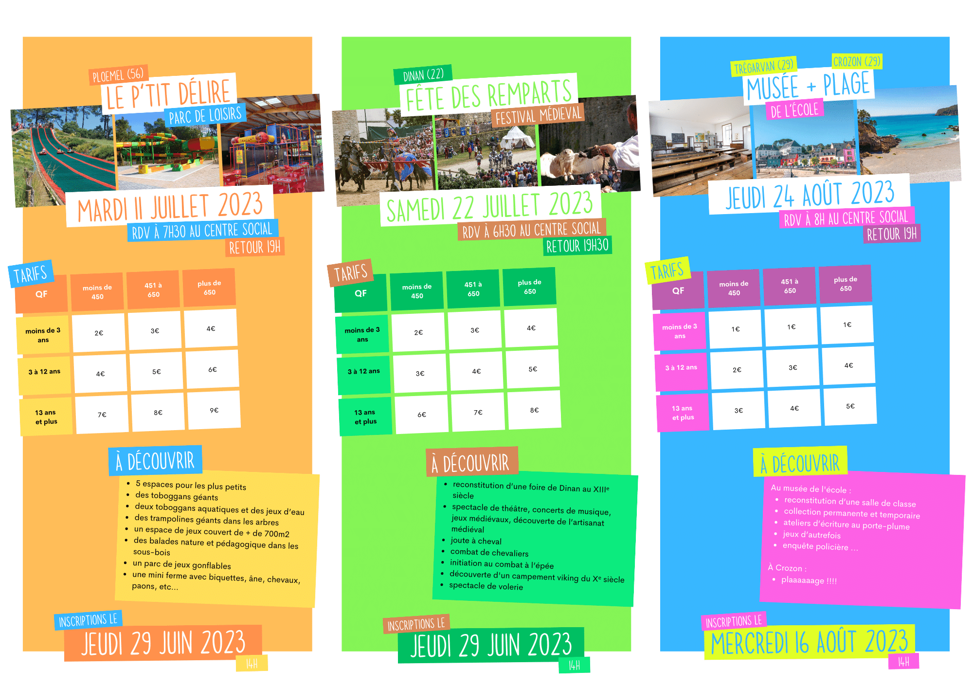Ouvert aux habitant.es et aux familles du quartier, les sorties de l’été organisées par le secteur famille du Centre social se dévoilent à vous !