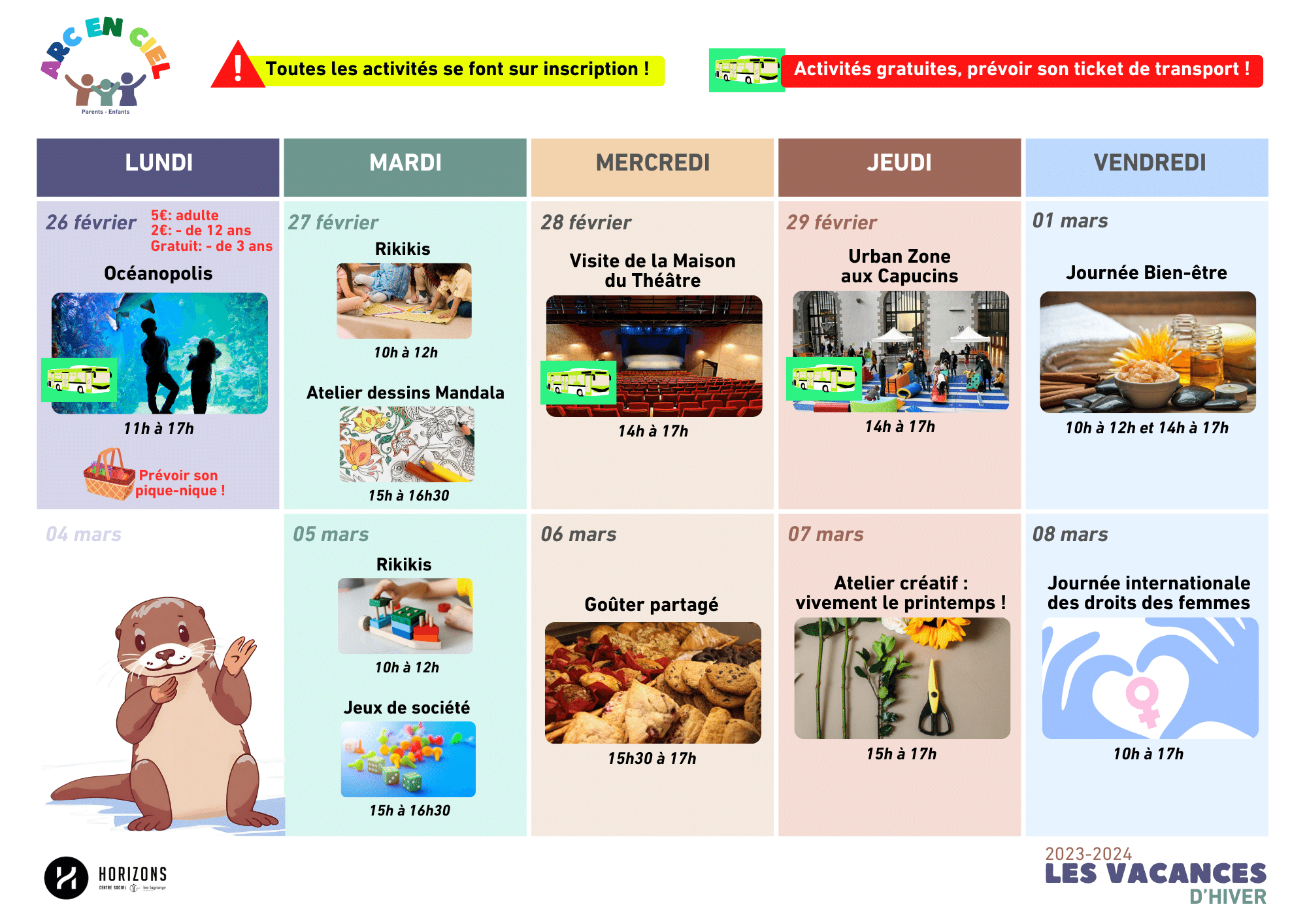 Le planning des deux semaines de vacances d’hiver est à découvrir ci-dessous !