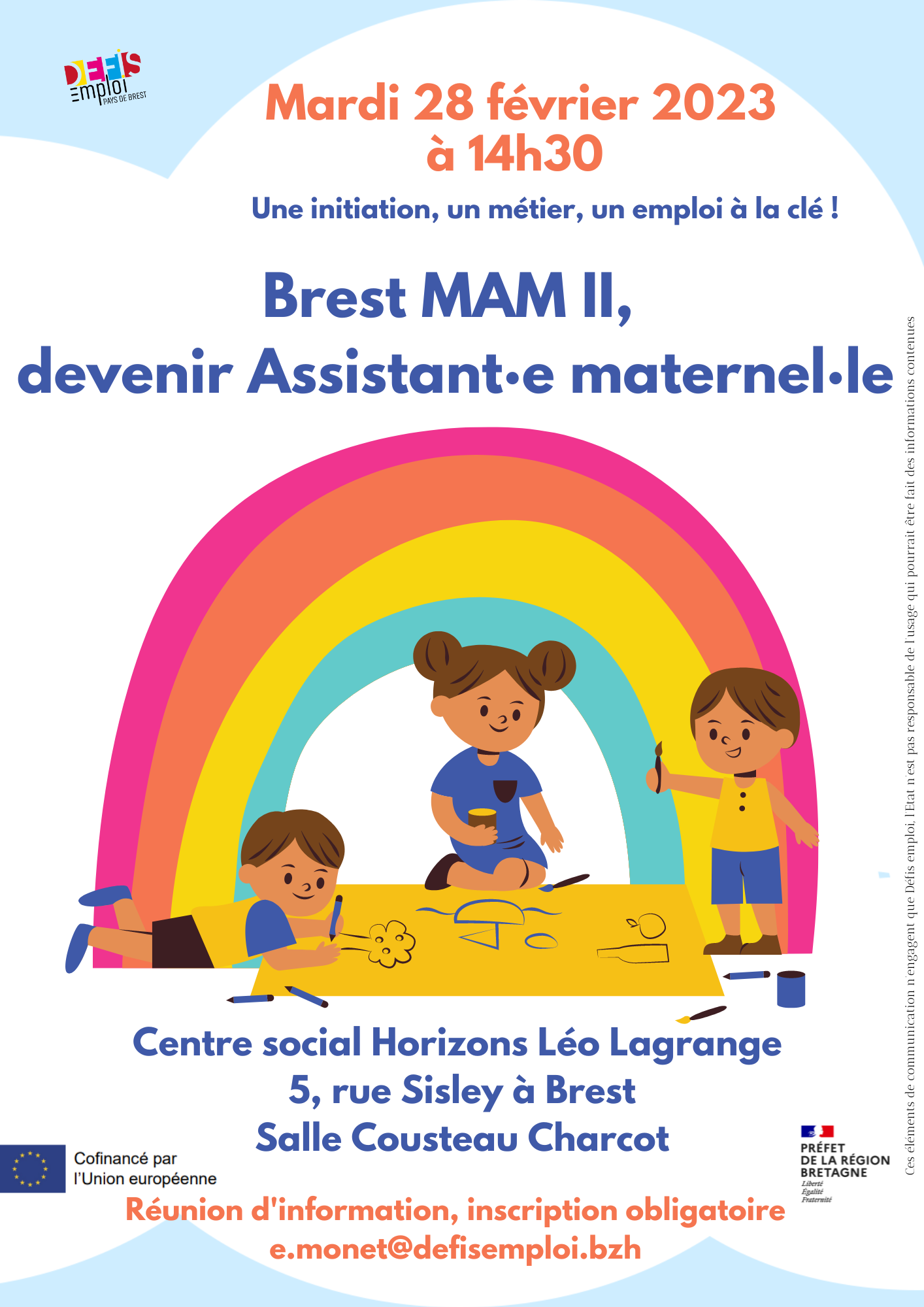L’inscription à la réunion est obligatoire et se fait à l’adresse suivante : e.monet@defisemploi.bzh