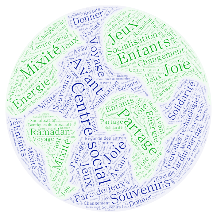 Nuage de mots – Semaine citoyenne Publication publiée :21 mai 2019 Post category:Enfance / Famille / Jeunesse / Manifestations / Pontanezen / Projet Social / Projets Suite à la semaine citoyenne qui a eu lieu du 13 au 17 mai, un nuage de mots a été réalisé avec les mots les plus employés par les habitants.