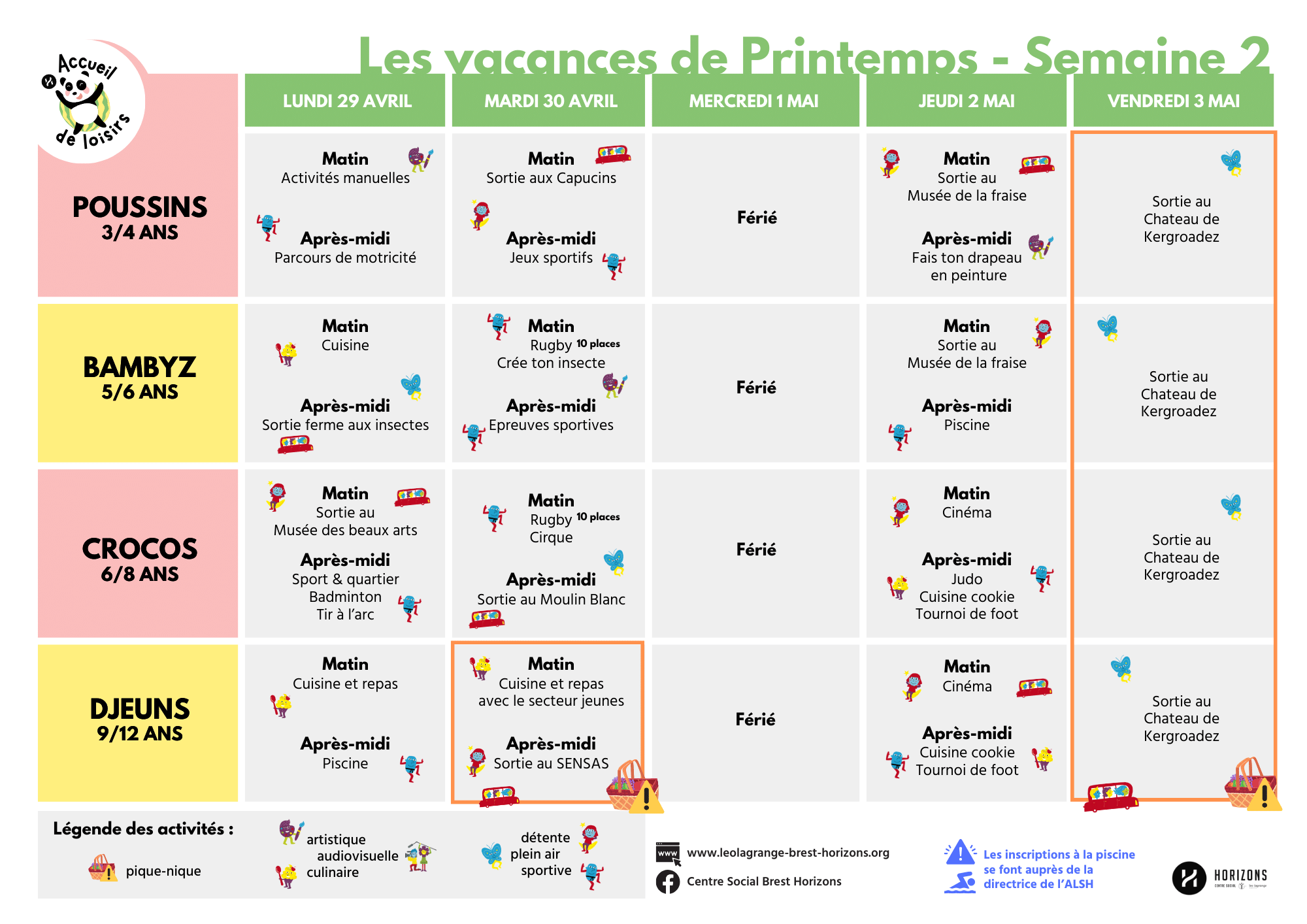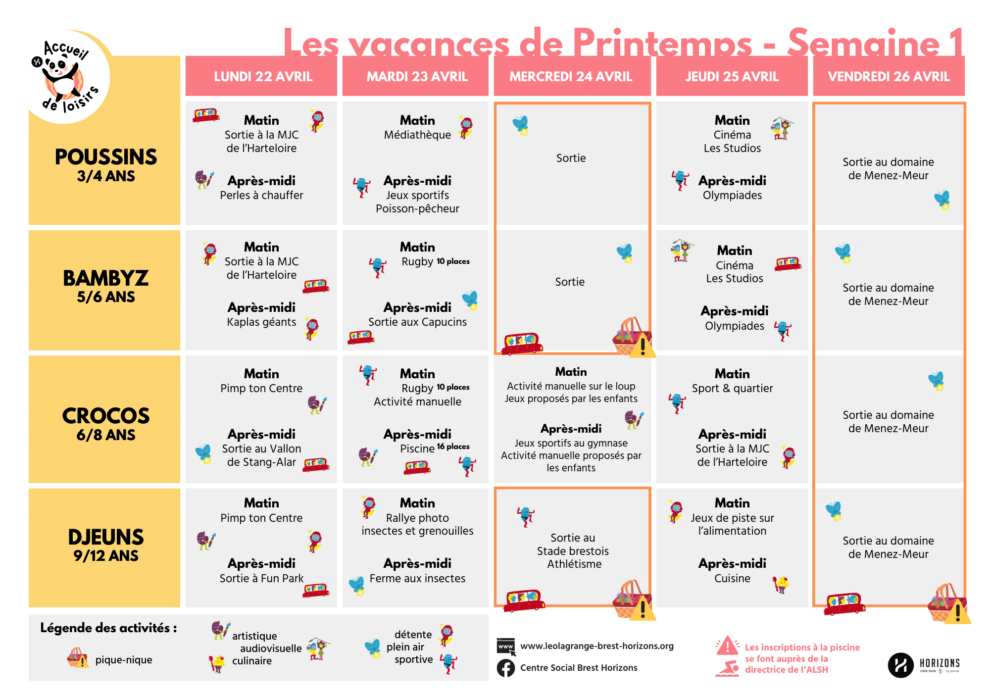 Planning des vacances de printemps– Enfance (3/12 ans)