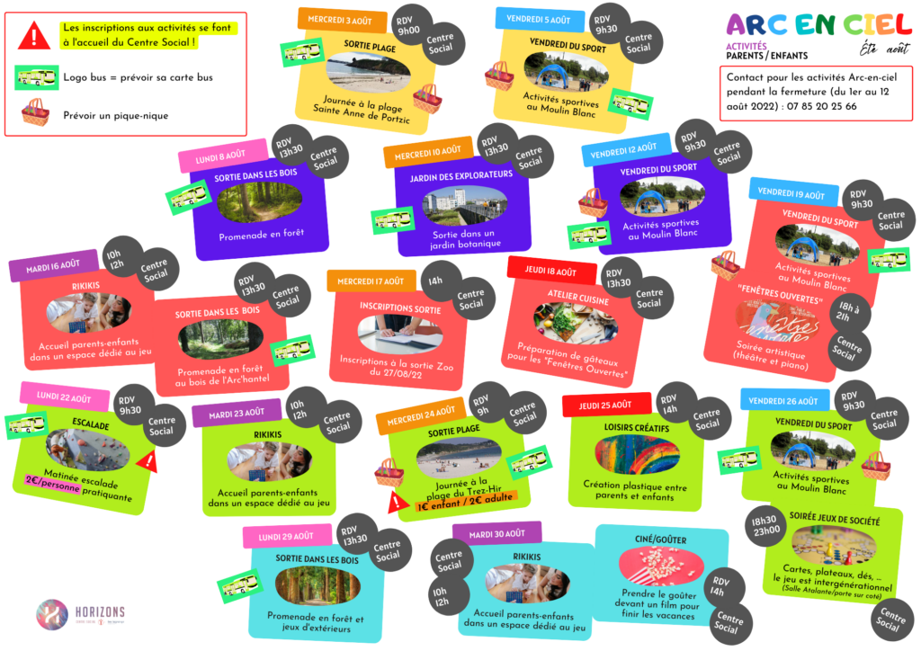 Alors que le mois de Juillet touche à sa fin, le mois d’Août approche lui à grands pas ! Vous êtes invités à découvrir et consulter les activités parents/enfants ci dessous !