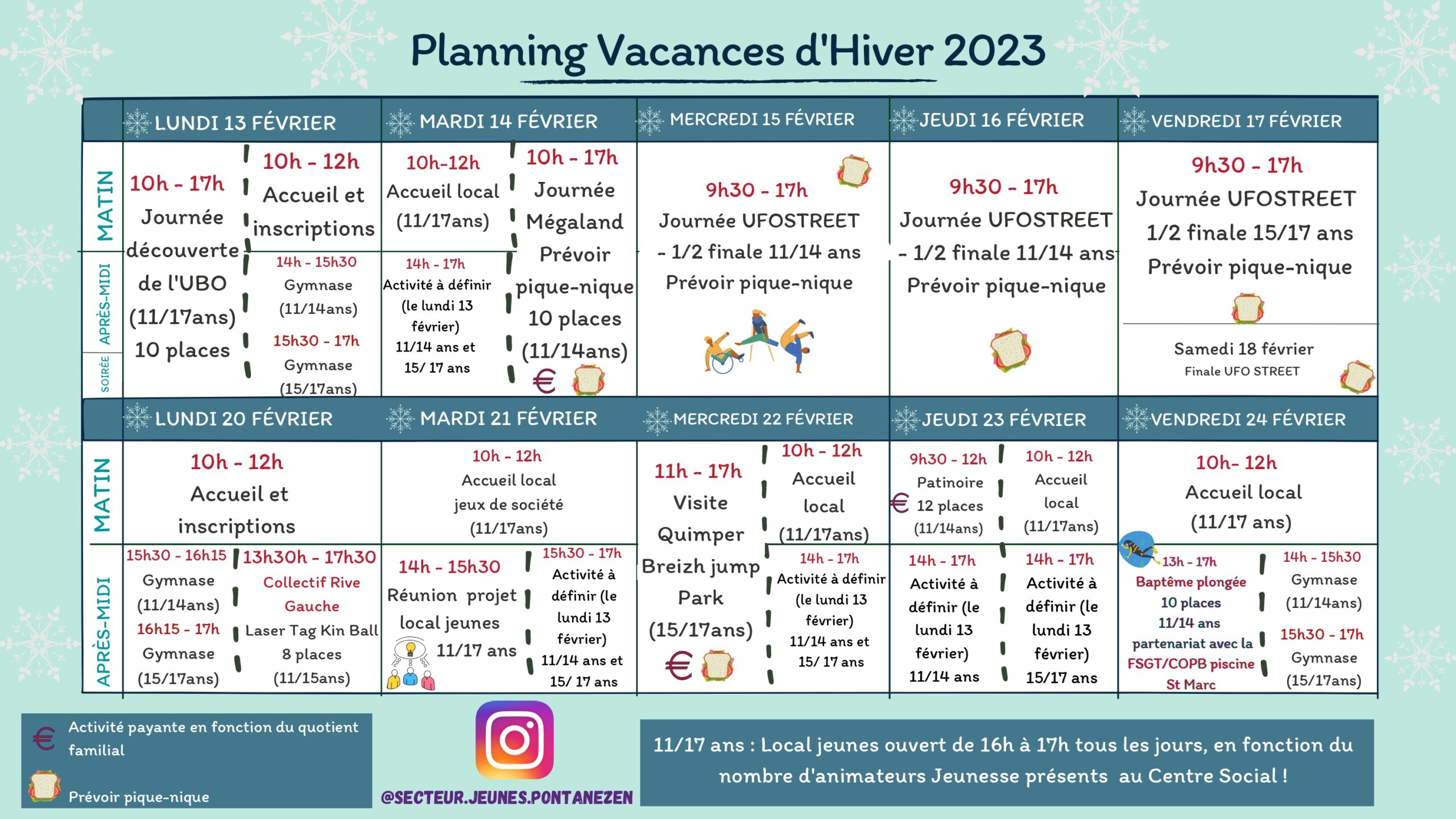 Pour ces vacances d’hiver, le secteur jeunesse a préparé un programme riche en sport , mais aussi en sorties dont certaines sensationnelles comme Megaland, le Breizh Jump Park ou encore un baptême de plongée sous marine.