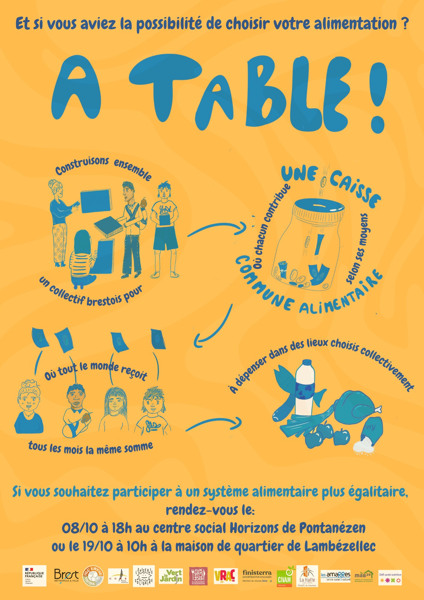 Projet pour lutter contre les injustices alimentaires : réunion le 8 octobre à 18h au Centre Publication publiée :1 octobre 2024 Post category:A l'affiche / Associations / Partenaires / Pontanezen / solidarité Une réunion d’information concernant un nouveau projet pour lutter contre les injustices alimentaires aura lieu le mardi 8 octobre à 18h au Centre social Horizons, et le samedi 19 octobre à 10h à la Maison de quartier de Lambézellec : Étiquettes: aide, alimentation, brest, pontanézen, solidarité Read more articles Article précédentDates des commandes du cabas des champs – 2024 / 2025 Article suivantCabas des champs – Octobre 2024