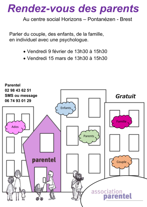 L’association Parentel annonce ses nouvelles permanences au Centre social pour Février et Mars.