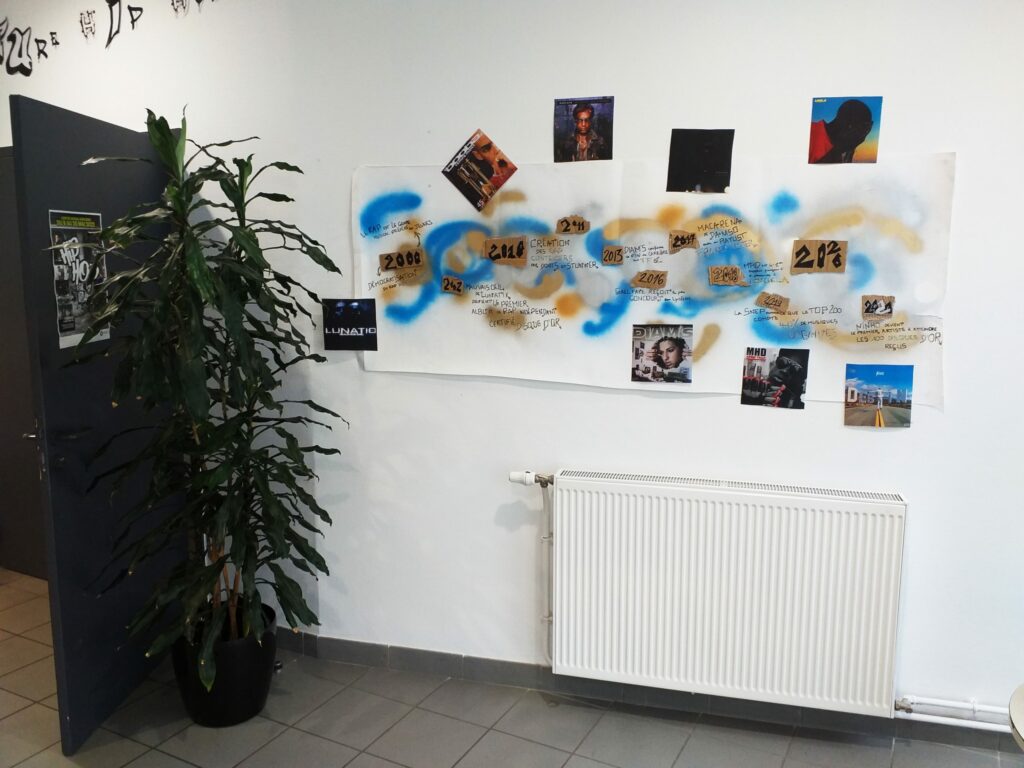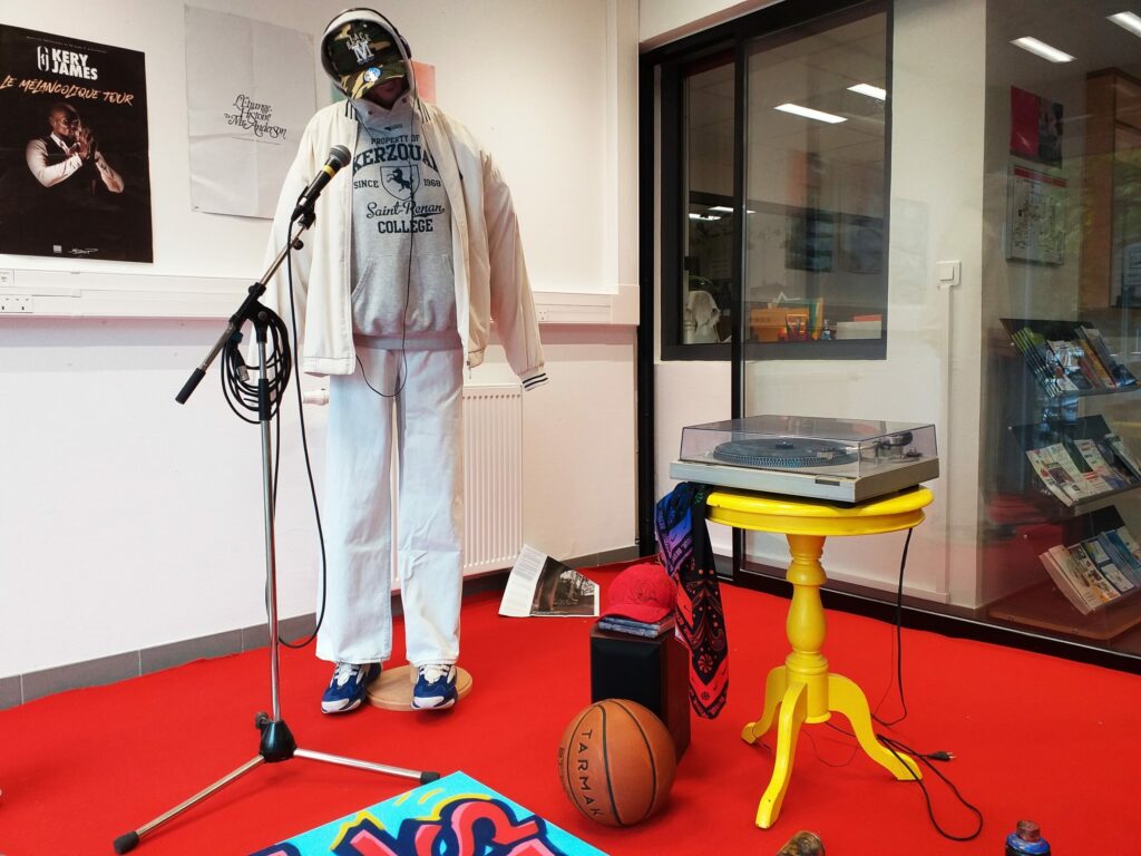 Visible du 9 au 20 mai dernier, l’exposition avait pour but de mettre en avant l’histoire du hip Hop, ses composantes ainsi que les origines des cultures urbaines. Il était ainsi possible de découvrir une fresque regroupant des albums important du rap français et leur impact, un poster descriptif de grands mouvements du breakdance, d’autres orientés sur le street art, des mannequins habillés en streetwear, … etc
