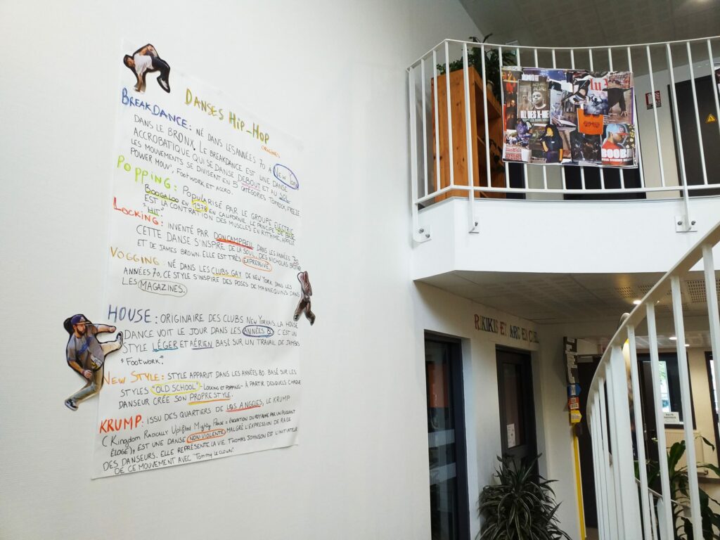 Jeudi 12 mai 2022, de 17h à 19h30, avait lieu le vernissage de l’exposition sur le hip-hop et les cultures urbaines organisée par Lucie Ganier, service civique au sein du secteur jeunesse.