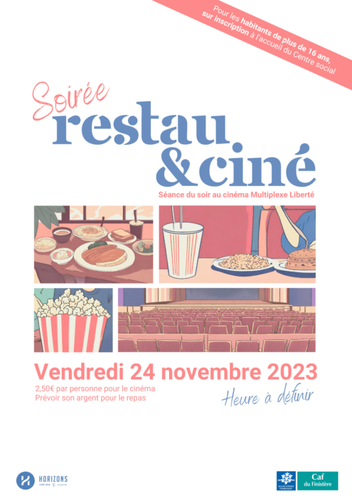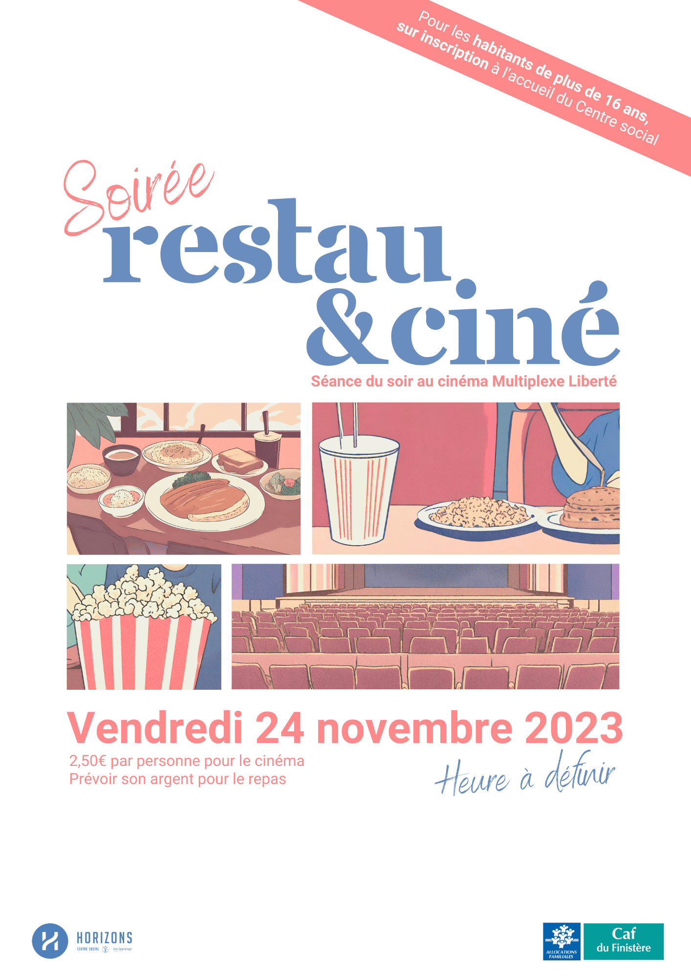 Vendredi 24 novembre 2023, les habitantes et habitants de plus de 16 ans sont invité.es à passer une soirée ensemble au restaurant et au cinéma !