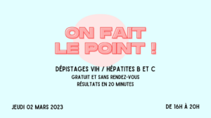 Jeudi 2 mars prochain, des dépistages VIH / hépatites B & C auront lieu de 16h à 20h au Centre Social…