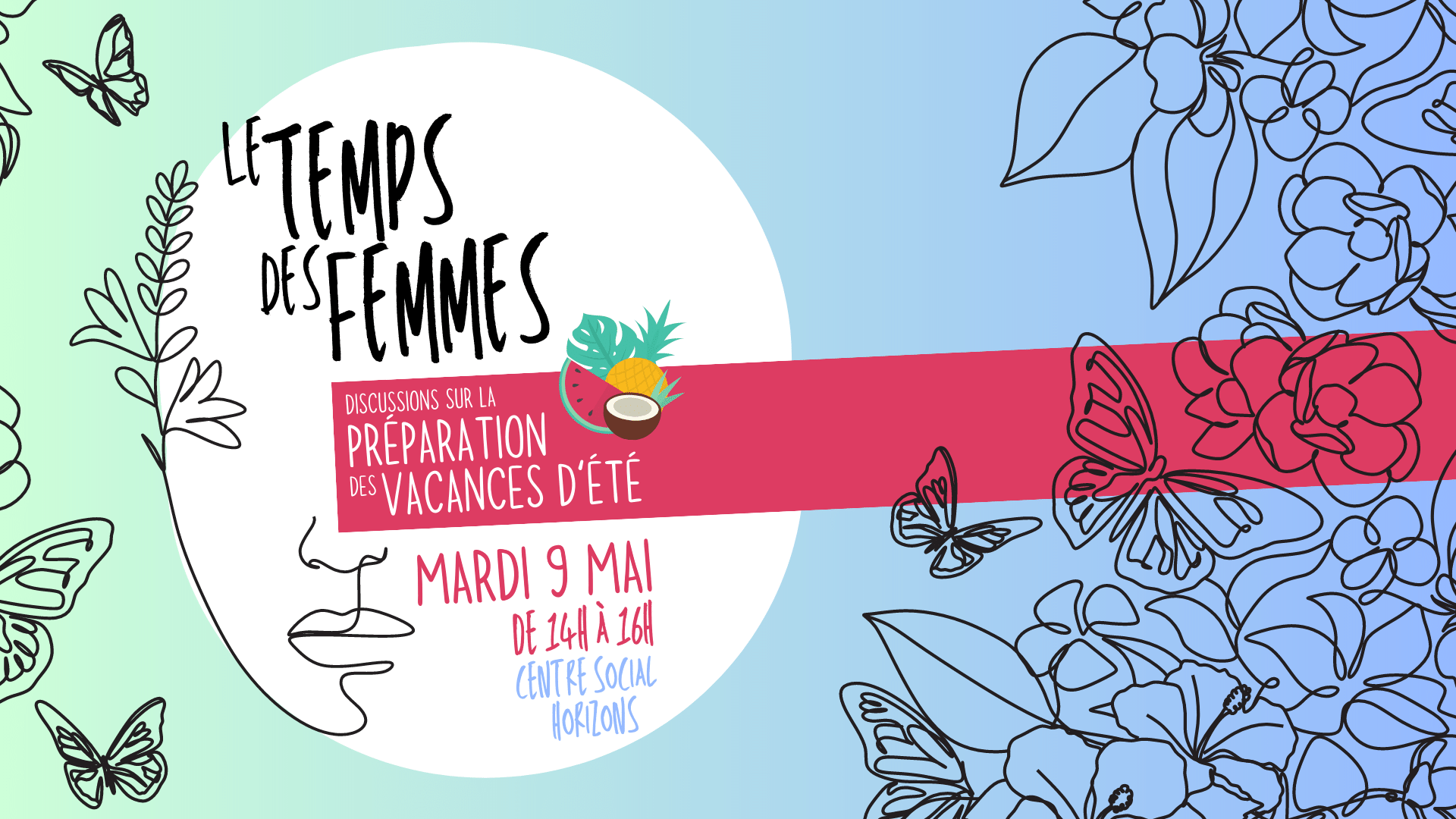 Prévu le mardi 9 mai de 14h à 16h, le prochain « Temps des femmes » aura pour thèmatique la préparation des vacances d’été qui approchent à grands pas !