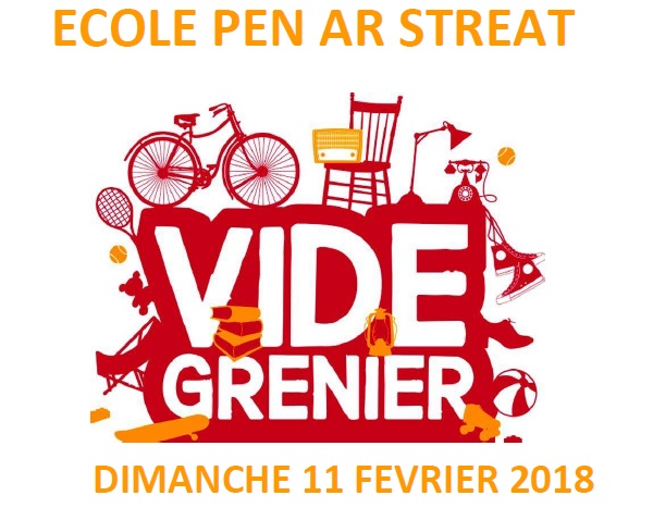 Les parents d’élèves de l’école Pen ar Streat organise leur premier vide grenier de l’année le Dimanche 11 février de 9h à 17h à l’école Pen ar Streat.